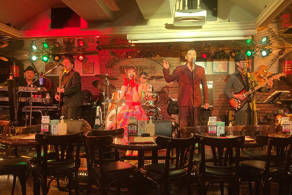 毎日、オールディーズバンドの生演奏(6名)を行っており、ステージ開始は19:30~4回(金、土は5回)です。